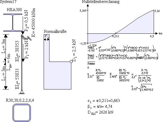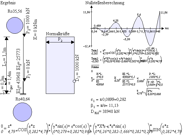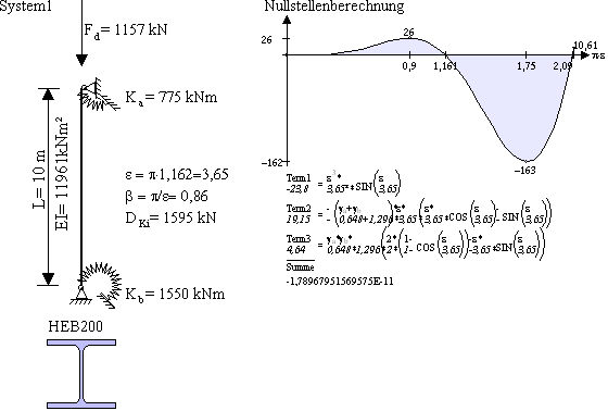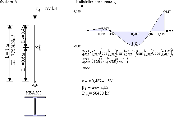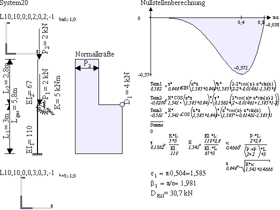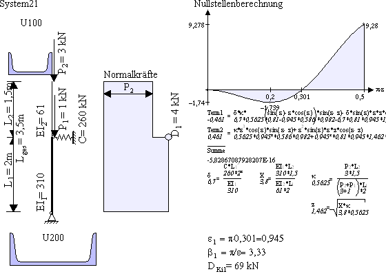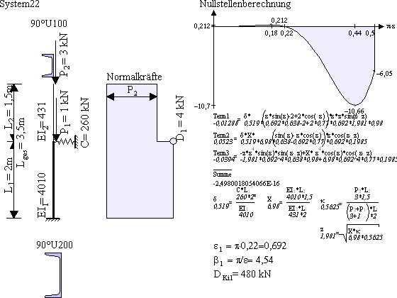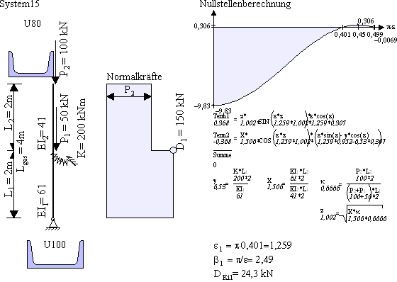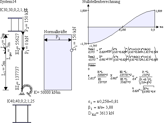 Antwort: Peterson bezieht den Knicklängenbeiwert immer auf das untere Stück L1. Die Knicklänge berechnet sich mit